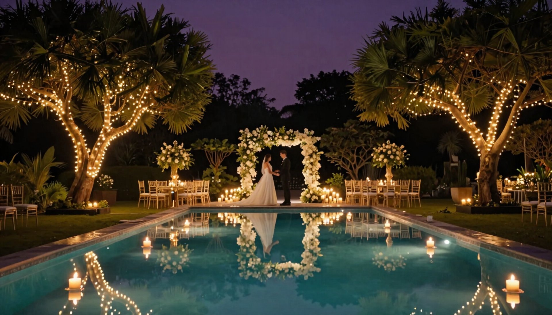 Immersion in a dreamy, ethereal atmosphere is our signature. We blend modern aesthetics with a refined romance, creating fluid transitions between garden ceremonies and poolside galas under a royal amethyst evening sky.